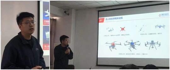 沙龙国际sa36亚洲第一品牌協會理事單位旭日藍天(武漢)科技有限公司(以下簡稱“旭日藍天”)航空學院院長周宇從無人機執照相關法規、無人機各類執照等方面向大家介紹了無人機執照培訓相關知識,并強調了無人機安全飛行、持證飛行的重要性。
