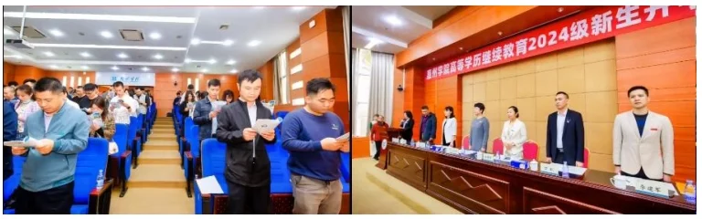 全体起立奏唱校歌、院校主要领导--党总支书记孙奕雯致辞,向 24 届学员提出学习要求和期望、新生代表和企业代表上台发言表达重新参与学习的喜悦和学习的决心、贴心安排学生餐厅,感受校园的饮食文化、参观春日百花盛开,花香书香四溢的校园,重拾关于校园的美好往昔,最后在丰湖书院前留下各位学员相聚的美好时刻,开学典礼圆满结束。