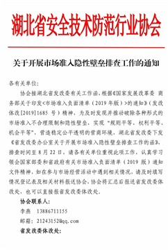 湖北省發改委下發《省發改委辦公室關于開展市場準入隐性壁壘排查工作的函》,排查時間至8月22日,請各有關單位重視此項工作,認真學習領會國家部委和省政府有關市場準入負面清單(2019版)通知文件精神,