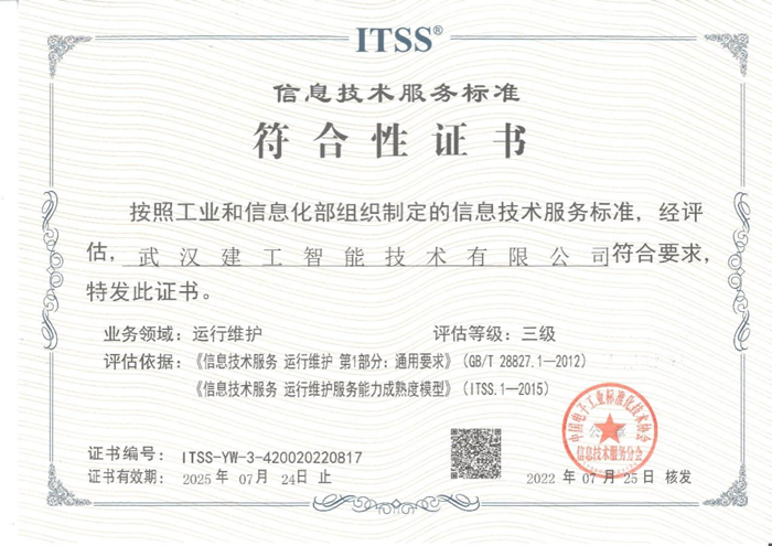信息技術服務标準符合性證書(ITSS3)